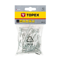 TOPEX Nit hliníkový trhací 4,8 mm x 23 mm, 50ks. Nity tohto typu poskytujú mimoriadne silný spoj pre širokú škálu materiálov / plechy, drevo, plasty, koža, atď. / TOPEX je značka výborná pre domácich majstrov.Sortiment značiek TOPEX zahŕňa náradie a doplnky pre domácnosť a garáže. Výrobky sú pevnej kvality.