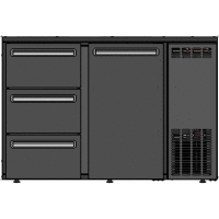 Barová chladnička s plnými dverami a 4 zásuvkami vlastnej výroby disponuje ventilovaným chladením, 35% nižšou spotrebou energie, 2 výškovo nastaviteľnými kovovými policami, znútra nastaviteľnými nožičkami, farba vonkajšku antracitová, farba vnútrajšku strieborná, ekologickým chladivom, LED osvetlením (aj v zásuvkách), plne vysúvateľnými zásuvkami na teleskopických lištách, elektronickým termostatom s automatickým odmrazovaním, vymeniteľným testením dverí. Perforované otvory na stranách pre chladiče KEG sudov.
