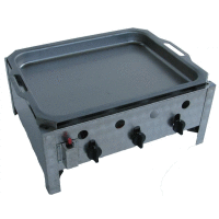 Stolová smažiaca panvica s troma horákmi, piezo zapaľovaním, termoelektrickou poistkou plameňa, oceľovým pekáčom (585 x 460 x 60 mm). - NIE JE SÚČASŤOU