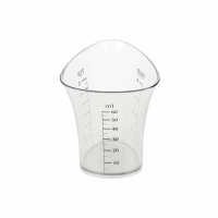 Priehľadná odmerka s mäkkou rukoväťou a potlačenou obojstrannou stupnicou na prednej aj bočnej strane pre ľahké čítanie. Trojrozmerná stupnica pre písmená (deci), cukor a múka v piatich jazykoch všetkých veľkostiach. Ľahká rukoväť a extra veľký výtok pre ľahké liatie.