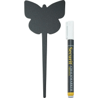 Súprava 5 ks popisovacích tabuliek Silhouette v tvare Motýľ so zapichovacím hrotom. Sú vhodné na pripevnenie do mäkkých materiálov. Súčasťou sady je 1 biely popisovač Securit.
