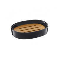 Štýlová miska na mydlo s odkvapkávačom zo série Andora. Vyrobené z materiálu príjemného na dotyk v námorníckej modrej. Ozdobné prvky z pravého bambusu jej dodávajú prirodzený šarm. Praktický a ľahko sa udržiava v čistote.
