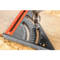 NEO štvorec s pravítkom (ref. 72-105) s výškou 185 mm je vybavený aj skladacím pravítkom, ktoré zvyšuje rozsah merania na 317 mm. Uholník je vyrobený z hliníka, popisovač je vyrobený z nehrdzavejúcej ocele.