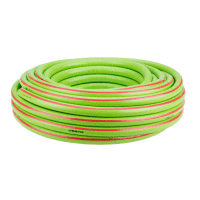 6-vrstvová 1/2" hadica z pružného PVC, vystužená polyesterovou priadzou, s dvoma opleteniami (krížom a trikotom). Perfektne sa hodí na starostlivosť o malé a veľké záhradné plochy, vrátane čistenia nábytku a náradia používaného vonku, bez ohľadu na ročné obdobie. Odolný voči usadzovaniu rias a UV lúčom a vhodný pre kontakt s potravinami vďaka vrstve Food Safe. Pohodlné použitie vďaka systému proti prekrúteniu. Trhací tlak 30 bar.