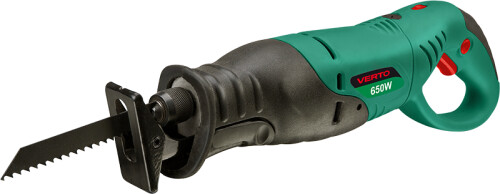 Chvostová píla VERTO s výkonom 650W ,je zariadenie určené na rezanie dreva, kovov a ďalších materiálov. Možno rezať až do hĺbky 115 mm do dreva alebo ocele až do 10 mm. Má robustné telo z odolnej umelej hmoty, rovnako ako nastavenie rýchlosti a spínač so zámkom pre trvalú prevádzku. Ergonomická rukoväť pokrytá mäkkým materiálom zvyšuje komfort pracovného nástroja. Súlad s európskymi bezpečnostnými normami poskytuje CE certifikát.