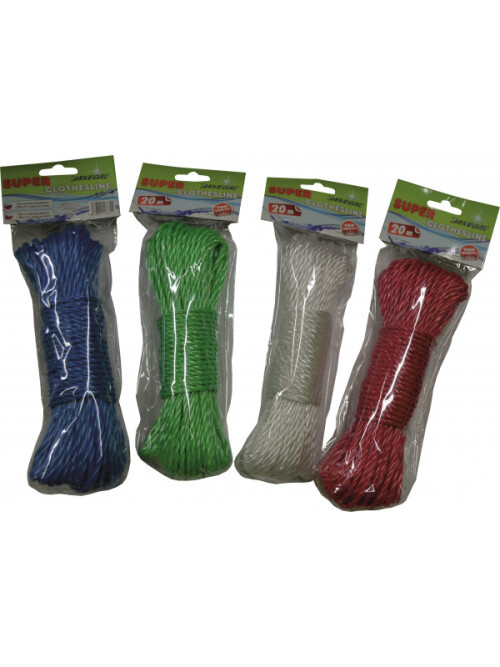 Polypropylénová šnúra na bielizeň s dĺžkou 20m. V rôznych farbách.