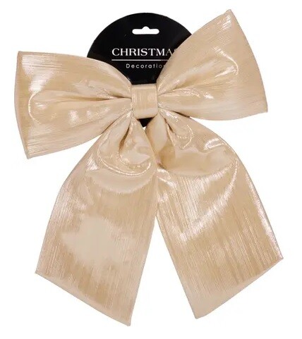Táto ozdobná mašľa v zlatej farbe je vyrobená zo 100 % polyesteru a má rozmery 28 x 34 x 2,5 cm. Je ideálna na vianočné dekorácie, kde je požadovaný elegantný a klasický vzhľad – napríklad na väčšie darčeky, vence alebo ako dekorácia na dvere. Ľahkosť polyesteru umožňuje jednoduchú montáž na rôzne povrchy. Farba a veľkosť ju robia pútavou a vhodnou do domácnosti aj do obchodného prostredia.