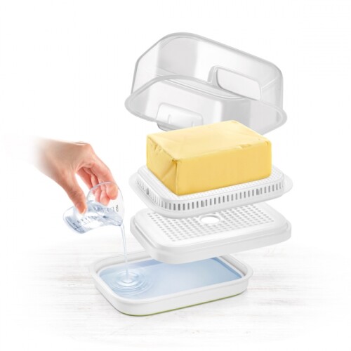 Vynikajúca na skladovanie masla pri izbovej teplote, jeho pohodlné prenášanie a podávanie. V dóze na maslo s vodným zásobníkom vydrží maslo ľahko roztierateľné, lahodné a svieže po dobu až 7 dní. Vyrobená revolučnou technológiou nanoCARE™, dóza na maslo nevstrebáva pachy a nezafarbuje sa, je antibakteriálna a ekologická. Po použití ju stačí bez saponátu opláchnuť, nie je potrebné umývať v umývačke. 3 roky záruka.