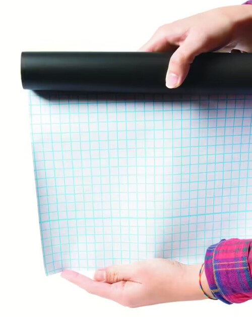 Čierna matná samolepiaca fólia vhodná na používanie kriedových popisovačov Securit. Celkový rozmer je 100 x 45 cm. Je vhodná na vystrihovanie špecifických tvarov s praktickou mriežkou na zadnom krycom papieri pre ľahké zakreslenie požadovaného tvaru.