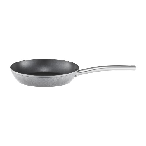 Panvica Bubble s priemerom 24 cm je perfektnou voľbou pre tých, ktorí oceňujú kvalitu a štýl v kuchyni. Vyrobená z kovaného hliníka s módnou vonkajšou tepanou úpravou, je odolná proti deformácii a rýchlo sa zahrieva, čo sa premieta do úspory energie pri varení. Nepriľnavý povrch Qualum Basic uľahčuje vyprážanie bez tuku a minimalizuje riziko pripálenia jedla. Pevná oceľová rukoväť umožňuje použitie panvice v rúre.