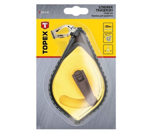 Stopárska šnúrka TOPEX s dĺžkou 30 m je základný nástroj pri stavebných a montážnych prácach. Umožňuje stanovenie priamej čiary na stenách, podlahách atď. Kryt vyrobený z vysoko kvalitného plastu. Systém rýchleho skladania šnúrky uľahčuje prácu. Značka TOPEX je určená pre domácich kutilov.Sortiment značiek TOPEX zahŕňa náradie a doplnky pre domácnosť a garáže. Výrobky sú pevnej kvality.