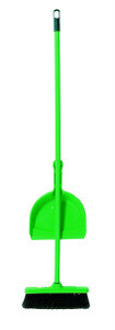 súprava na upratovanie sa skladá z plastovej lopatky a plastovej metly s umelými štetinami