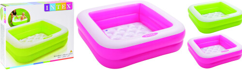 lay Box Pool je detský bazénik štvorcového typu s nafukovacím dnom od renomovaného výrobcu Intex . Objem vody 57 l pri výške hladiny 17 cm poskytne dieťaťu dostatok miesta a vody na hranie, zároveň však nie je ťažké ho každý deň znovu naplniť čistou teplou vodou. Výrobky firmy Intex samozrejme spĺňajú všetky bezpečnostné pravidlá a sú vyrobené z kvalitných a odolných materiálov.