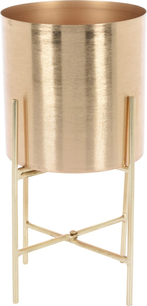 Kvetináč na nožičkách v modernom dizajne v zlatej farbe. Kvetináč bude zaujímavou dekoráciou ako do obývačky, spálne, tak aj vstupnej haly. Tento typ kvetináča bude krásnou ozdobou v reštauráciách alebo kaviarňach. Ideálne pre umelé aj prírodné kvety. Kvetináč funguje ako obal, nemá odtokový otvor.