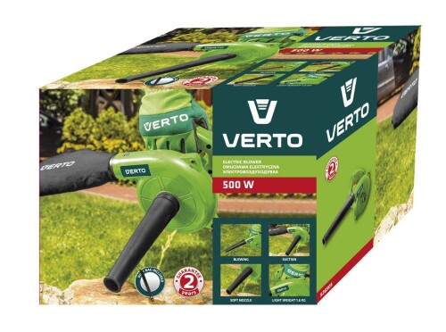 Elektrické dúchadlo VERTO 500 W je vhodným fúkacím a odsávacím nástrojom. Používa sa doma, v záhradách a dielňach alebo v garáži. Umožňuje antistatické čistenie, odstraňovanie prachu a sušenie, fúkanie listov, trávy a ihličia z terás, ciest a chodníkov. Má ergonomickú rukoväť pre pohodlnú obsluhu jednou rukou. Nástroj sa dodáva s vreckom proti prachu. Súlad s európskymi bezpečnostnými normami sa potvrdzuje certifikátom CE. Značka VERTO je široký sortiment výrobkov pre záhradu, dielňu a domácnosť. Ručné a elektrické náradie sú ideálne pre stredné zaťaženie.