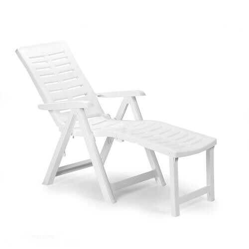 Lehátko ARIZONA vyrobené z plastu, bielej farby s rozmermi 60x108x109 cm, s podnožkou a nastaviteľnou opierkou. Záhradné lehátko spríjemní chvíle strávené na čertsvom vzduchu.