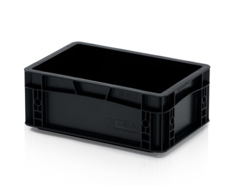 EDS Euro prepravky sú vyrobené z kvalitného a vodivého polypropylénu čiernej farby. Určené pre prepravu a skladovanie citlivých elektro súčiastok. Zamedzujú vzniku elektrostatického náboja. Vždy bezpečná manipulácia s elektro komponentmi s boxmi od TBA. Možnosť potlače.